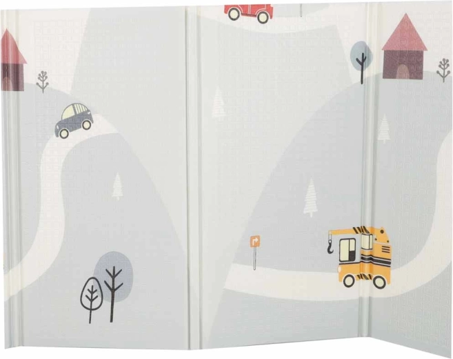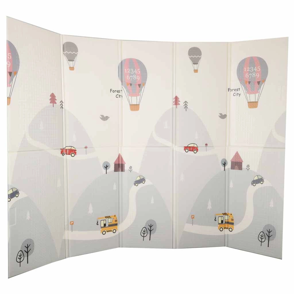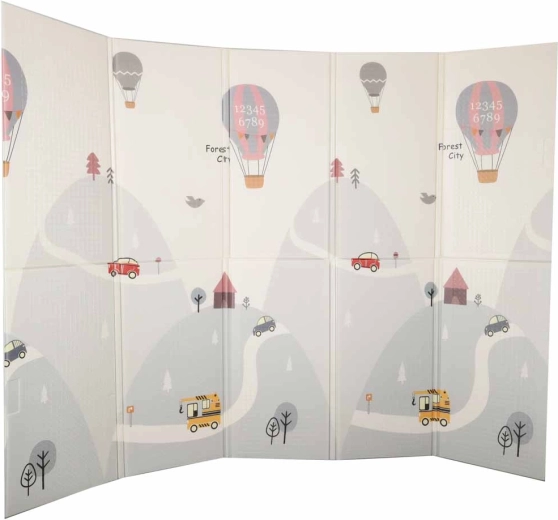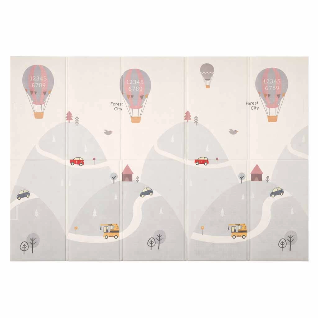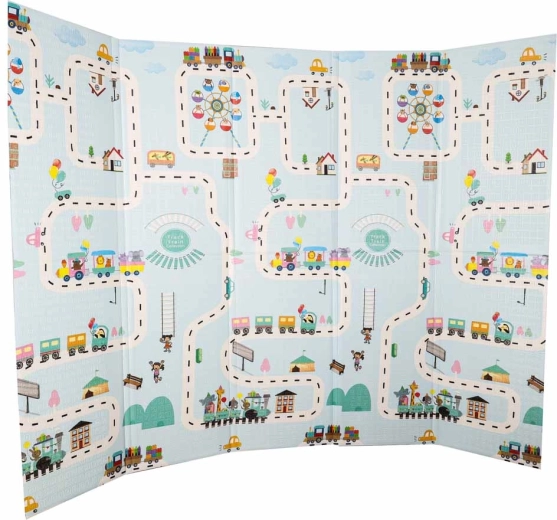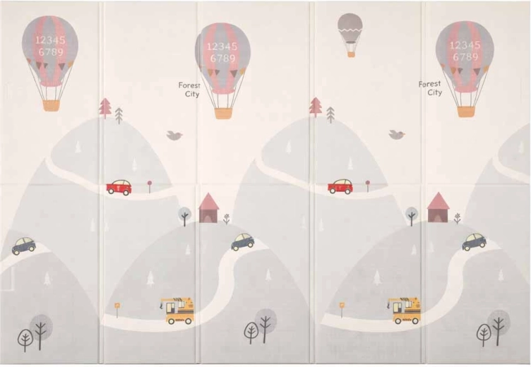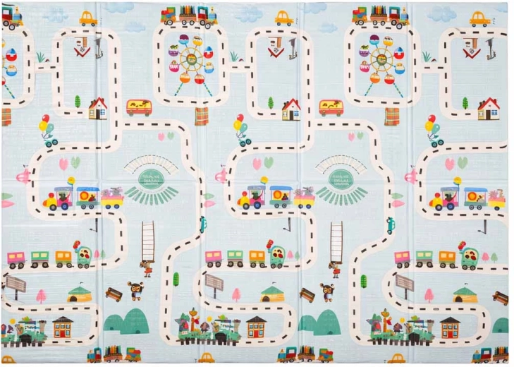 Šis kvalitatīvais putu paklājs ir veidots drošai un ērtai ikdienas spēlei. Elastīgais un mīkstais slānis efektīvi slāpē kritienus, lēcienus un pirmās nedrošās kustības, savukārt pretizslīdes, viegli teksturētā virsma nodrošina stabilitāti uz grīdas. Divpusējais apdruku dizains ar ielu un pilsētiņas motīvu vienā pusē un maigu, pasteļtoņu ainavisku rakstu otrā pusē veicina iztēli un harmoniski iekļaujas mūsdienīgā interjerā.