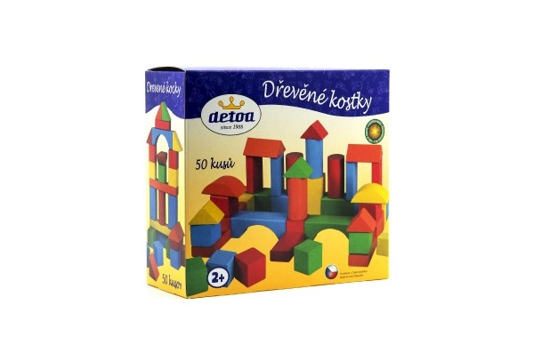 Šis klasiskās koka klucīšu konstruktors no Čehijas zīmola Detoa piedāvā 50 košus gabaliņus pamatformās – cilindrus, ķieģeļus un kubus. Bērni trenē roku koordināciju, loģisko domāšanu un fantāziju, būvējot torņus, mājiņas vai tiltus. Dabīgs materiāls un izturīgs izpildījums nodrošina ilgu kalpošanas laiku un drošu spēlēšanos.