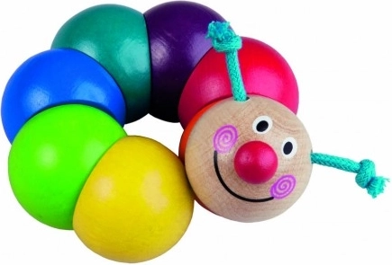 Šis mīlīgais DETOA zīmola kāpurs ir izgatavots no kvalitatīva koka un krāsainām pērlītēm, kas savērtas uz elastīgas gumijas. Spiežot un liecot, kāpurs kustas, kas bērniem sagādā prieku un vienlaikus dabiski trenē satvērienu un acu–roku koordināciju.