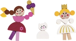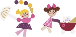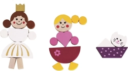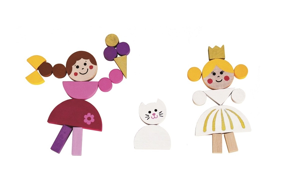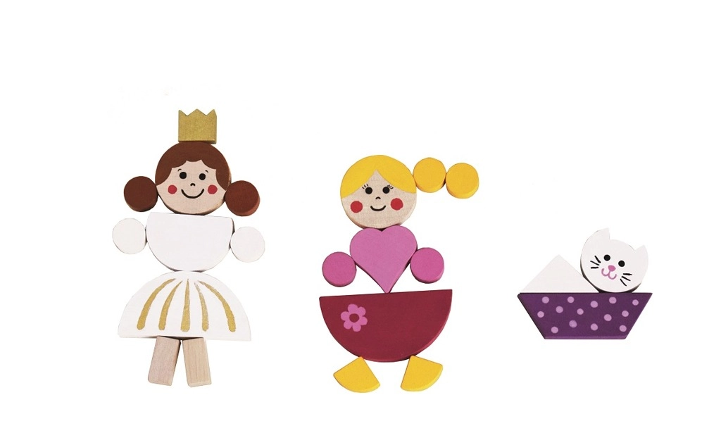 Krāsainos koka gabaliņus ar magnētu var viegli salikt tēlos, dzīvniekos un pilīs. Bērni izveidos savas pasakas un ainas tieši pēc savas fantāzijas.