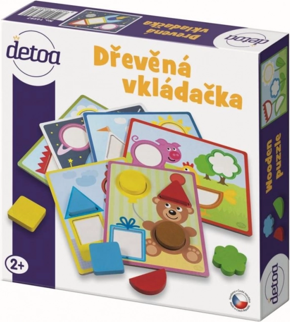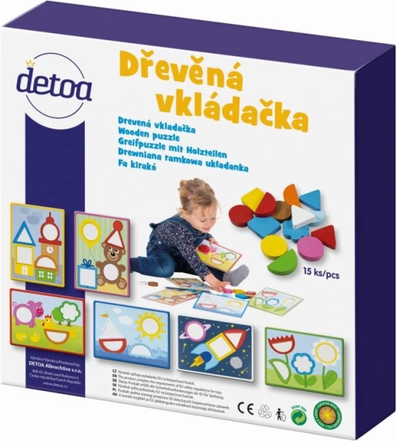 Koka ieliktnis DETOA ir ideāla didaktiska rotaļlieta, kas veicina bērna dabisku attīstību. Bērni trenē sīko motoriku, acu–roku koordināciju un loģisko domāšanu, meklējot pareizo formu atbilstošajam atvērumam. Krāsainie gabaliņi un 6 spēļu paraugi notur uzmanību un veicina aizraujošu mācīšanos.