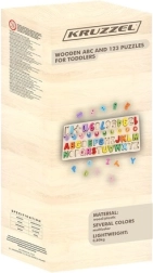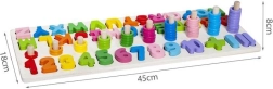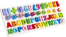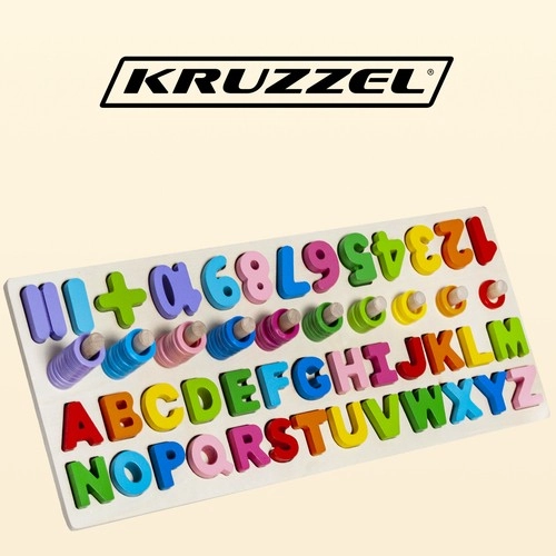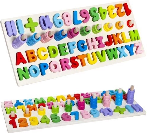 Šī multifunkcionālā koka puzle apvieno izklaidi un mācīšanos vienā. Spēlējoties bērni iepazīst burtu un ciparu formas, mācās tās nosaukt, veidot pirmos vienkāršos vārdus un trenē skaitīšanu ar gredzeniem uz tapām. Košas krāsas motivē atklāt un veicina radošumu un koncentrēšanos.