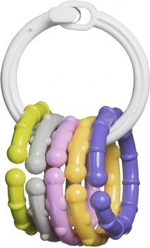 Viegls riņķis ērti ieguļ plaukstā, un piekariņus ir viegli turēt. Spēlējoties bērns trenē satvērienu, veiklību un priekšmetu apgūšanu.