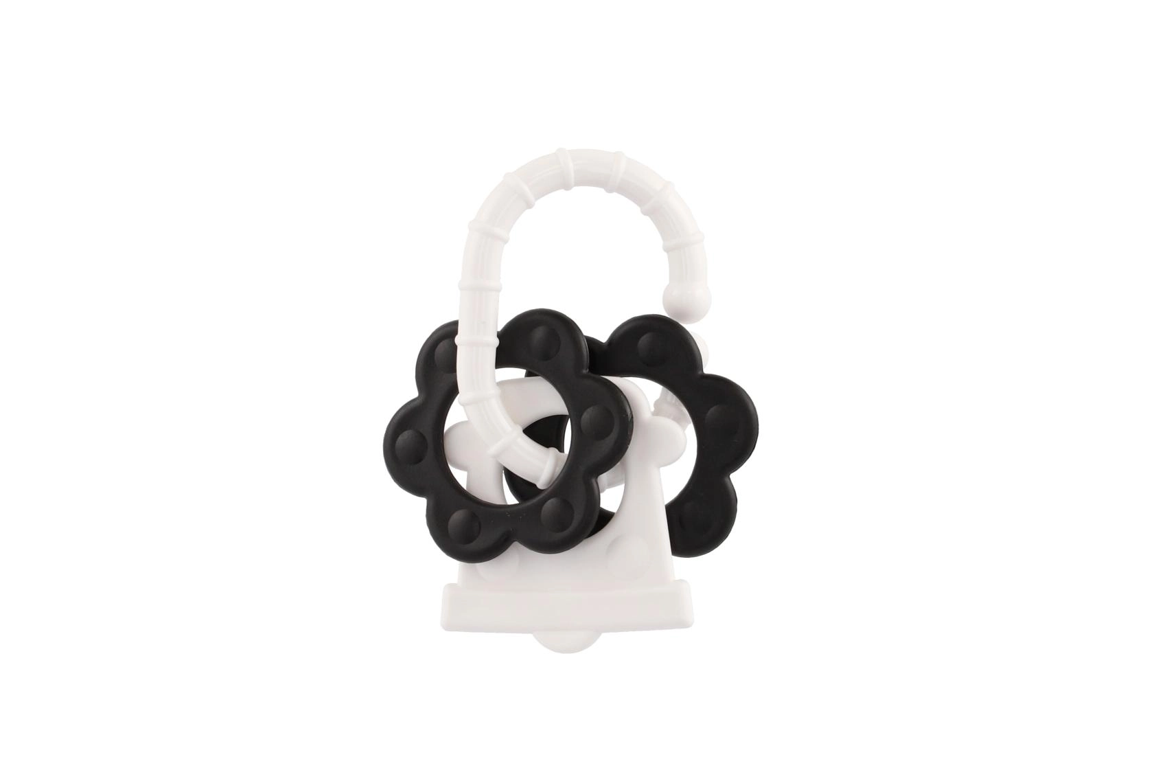 Atklājiet košļājamās rotaļlietas, kas īpaši izstrādātas pašiem mazākajiem – kontrastējošais melnbaltais dizains piesaista mazuļa uzmanību un palīdz stimulēt vizuālo uztveri. Pateicoties ērtajam rokturim, rotaļlietu ir viegli noturēt mazajās rociņās, bet grabulītis nodrošina maigu skaņas stimulāciju.