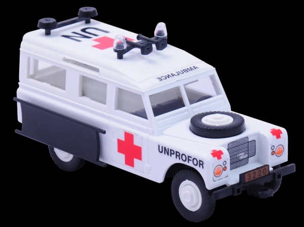 - Autentisks izskats – militārā UNPROFOR ātrā palīdzība uz Land Rover šasijas