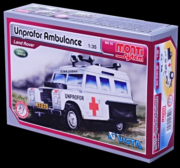 Monti System komplekts piedāvā autentisku UNPROFOR ātrās palīdzības automobiļa modeli uz Land Rover bāzes mērogā 1:35. Detaļas precīzi pieguļ, tādēļ modelis tiek salikts bez līmes un bez nepieciešamības krāsot. Rezultāts ir tīrs un izturīgs modelis, piemērots gan spēlēšanai, gan kolekcijai.