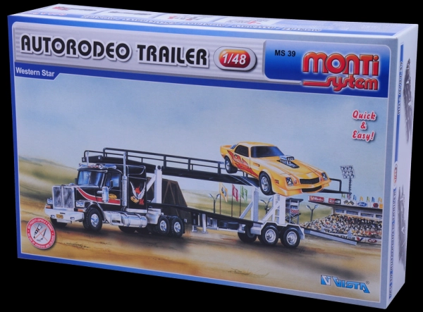 Monti System konstruktoru komplekts Autorodeo Trailer sniedz izklaidi un radošumu. Modelis ir veidots tā, lai to varētu salikt bez līmēšanas vai krāsošanas, kas atvieglo lietošanu bērniem un iesācējiem modelētājiem.