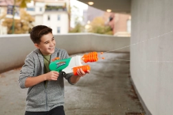 Ūdens blāsteris NERF Super Soaker Hydro Frenzy ir veidots ātrām un atsvaidzinošām ūdens cīņām. Kompaktie izmēri atvieglo lietošanu, bet pumpēšanas mehānisms nodrošina stabilu strūklu, kas droši samērcēs pretiniekus. Ideāli piemērots vasaras dienām, kad vajag gan atvēsināšanos, gan izklaidi vienlaikus.