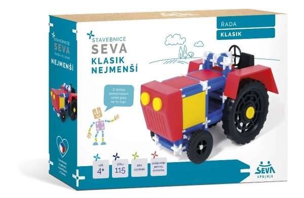 Seva Klasik ir radošs konstruktors, kas izstrādāts jaunākajiem būvētājiem un palīdz bērniem attīstīt tehnisko domāšanu un roku prasmes. Iepakojumā atradīsiet praktisku instrukciju, kas atvieglo traktora salikšanu. Konstruktora variētspēja ļauj būvēt dažādus modeļus, piemēram, funkcionējošus transportlīdzekļus, mehānismus, lidmašīnas, ēkas vai mēbeles.