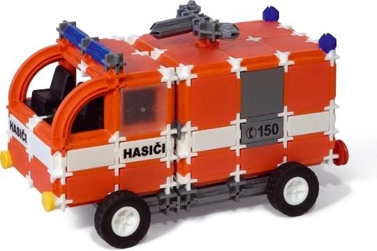 Uzbūvējiet ugunsdzēsēju auto ar paceļamu platformu, lielu cisternu ar iespēju grozīt un vadības (tehnisko) auto. Neiztrūkst arī tematiskās uzlīmes “HASIČI, RESCUE, FIRE” un ārkārtas tālruņa numurs 150, kas bērniem palīdzēs apgūt svarīgus drošības principus.