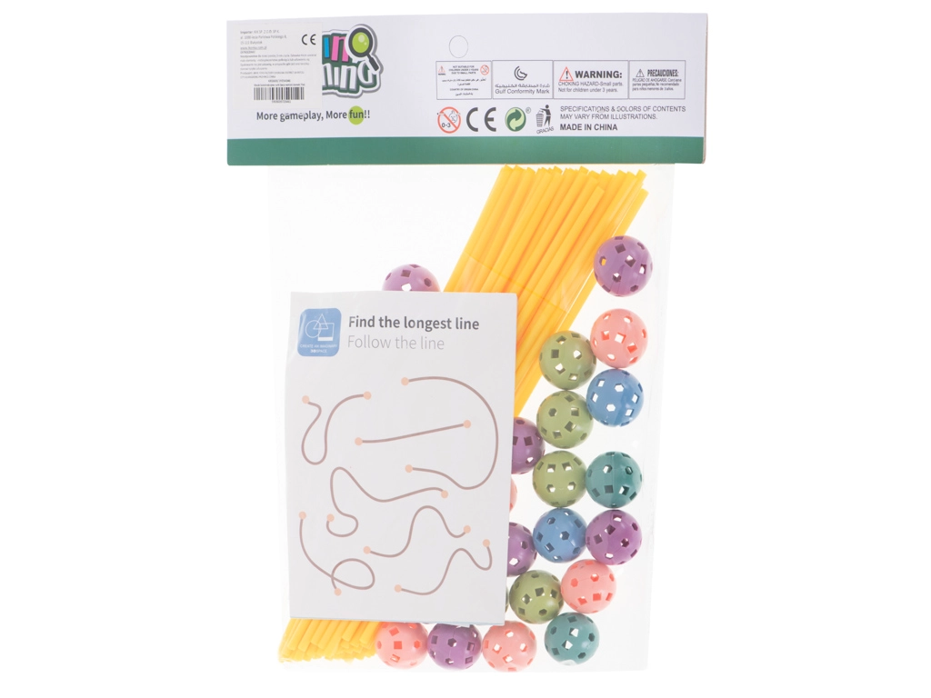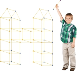 Atklājiet radošās būvēšanas burvību ar mūsu lielisko konstruktoru, kas ļauj bērniem veidot plašu struktūru klāstu, piemēram, teltis, bāzes vai pat suņu būdas! Komplektā ir 75 detaļas, tostarp 51 dzeltenais stienis un 24 dažādu krāsu savienojošās bumbiņas, kas nodrošina neierobežotas būvēšanas iespējas.