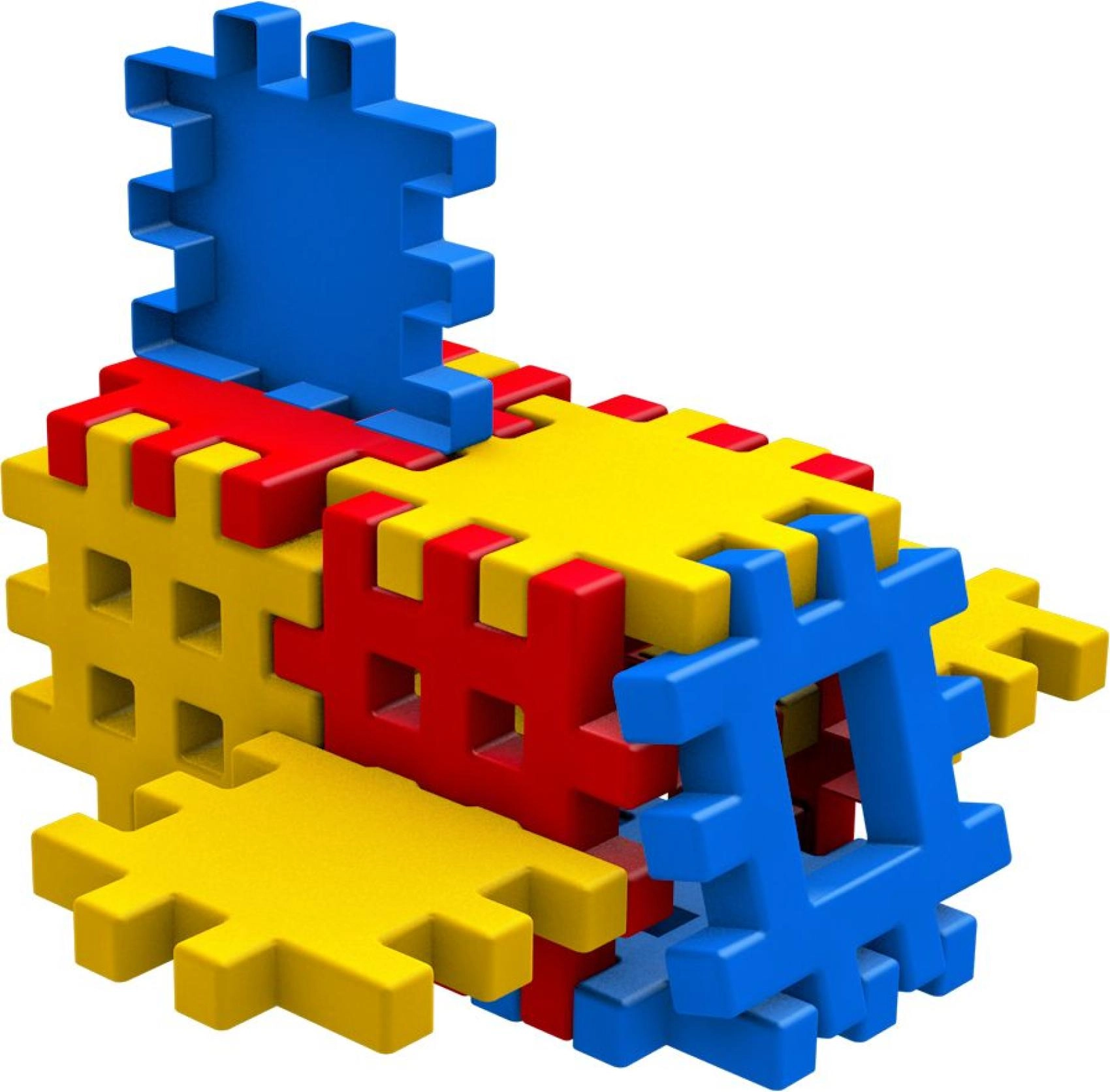Zobainās malas un režģveida virsmas nodrošina stingru detaļu savienojumu un ļauj būvēt vienkāršas 3D formas, klucīšus un torņus.