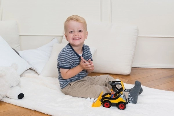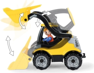 Priekšējo kausu ir viegli pacelt un nolaist, tāpēc bērni var bērt un pārbērt smilti vai klucīšus kā īsts iekrāvējs.