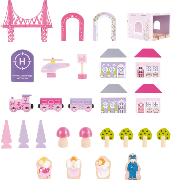 Šī vilciena trase ir ideāla bērniem, kuri mīl pasaku un princeses tematiku. Komplektā ir 75 detaļas, tostarp tilti, tuneļi, mājiņas un koki, kas ļauj bērniem izveidot savu burvīgo pasauli.