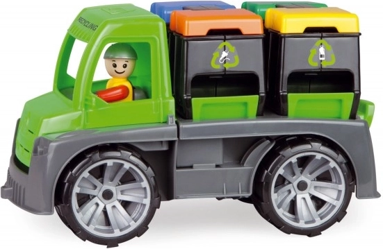 Komplektā ietilpst divi speciāli konteineri ar drošinātāju pret nejaušu atdalīšanos no kravas automašīnas. Katram konteineram ir atverams vāks un apakšējā izbēršana, kas ļauj interaktīvi šķirot atkritumus. Aktīvā figūriņa papildina spēļu pieredzi un māca bērniem par atkritumu apsaimniekošanas niansēm.