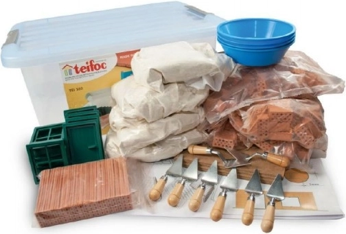 Izbaudiet būvēšanas prieku ar šo Teifoc Skolas komplektu. Ar īstām ķieģeļiem un kukurūzas javu varat būvēt un attīstīt bērnu smalko motoriku un radošumu.