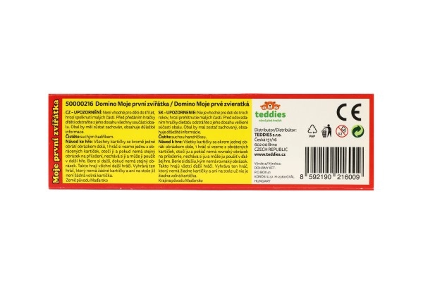Aizraujošs un izglītojošs domino ar dzīvnieciņiem pašiem mazākajiem, kuri vēl nemāk skaitīt. Ietver 28 izturīgas plastmasas kartītes ar dzīvnieku attēliem kompaktā kastītē 21 × 6 × 3 cm. Lieliski piemērots uzmanības, atmiņas un sīkās motorikas attīstīšanai, kā arī pirmajai kopīgai spēlēšanai ar vecākiem.