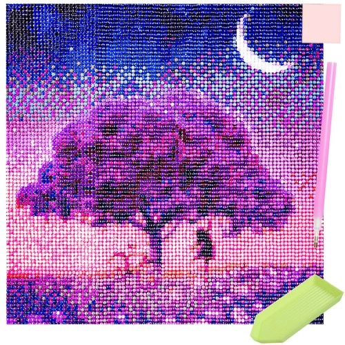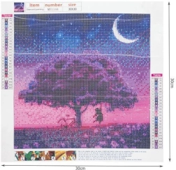 Atklājiet relaksējošo radošās darbības pasauli ar šo 5D dimanta gleznošanas komplektu. Pilns komplekts ar motīvu koks zem mēnessgaismas debesīm nodrošinās stundām ilgu radošu izklaidi, trenēs pacietību un koncentrēšanos, bet gatavais attēls, pateicoties mirdzošajiem akmentiņiem, burvīgi spīd. Lieliska dāvanu ideja un interjera dekorācija vienlaikus.