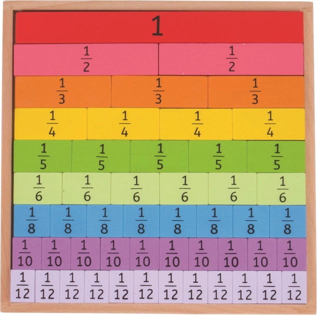Izklaidējošs un izglītojošs palīglīdzeklis mazajiem matemātiķiem, kas palīdz bērniem saprast daļskaitļus un to savstarpējās attiecības. Pateicoties krāsainajiem elementiem, viegli apgūst pamatkoncepcijas matemātikā.