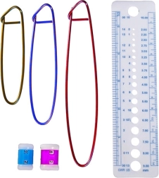 Komplektā ir viss, kas nepieciešams rokdarbiem: tamboradatas, šķēres, lineāls, adatas ar uzgaļiem, dūrienu fiksatori, marķieri un drošības saspraudes. Koškrāsaini piederumi ne tikai ienes krāsas jūsu radošajos brīžos, bet arī padara darbu patīkamāku.