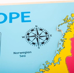 Atklājiet Eiropu rotaļīgā veidā ar Bigjigs Toys koka puzli. Krāsainā karte ar 25 gabaliem palīdz bērniem labāk saprast, kā Eiropas valstis savstarpēji saistītas, un dabiski attīsta ģeogrāfijas un vispārējās zināšanas. Izgatavota no kvalitatīva koka un atbilst Eiropas drošības standartiem.