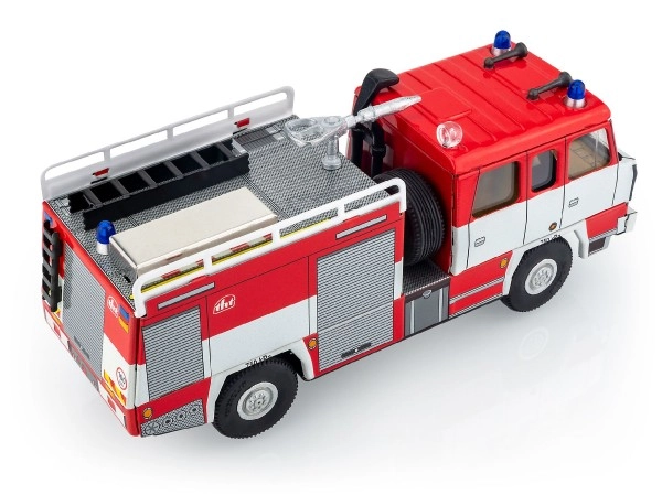 Atklājiet Čehijas mašīnbūves leģendu kompaktā formā: metāla modelis ugunsdzēsēju auto TATRA 815 aizrauj ar uzticamu virsbūves izpildījumu, reālistisku krāsojumu un pārdomātiem elementiem, piemēram, sānu skapīšiem un zilajām brīdinājuma gaismām. Grozāmā ūdens strūkla uz jumta piešķir modelim pievilcīgu funkcionālu akcentu.