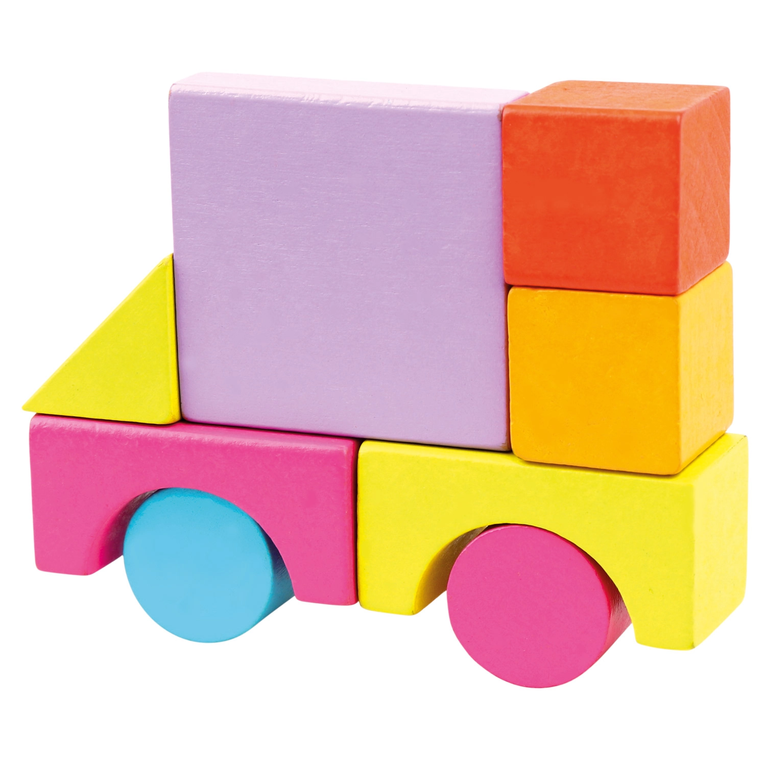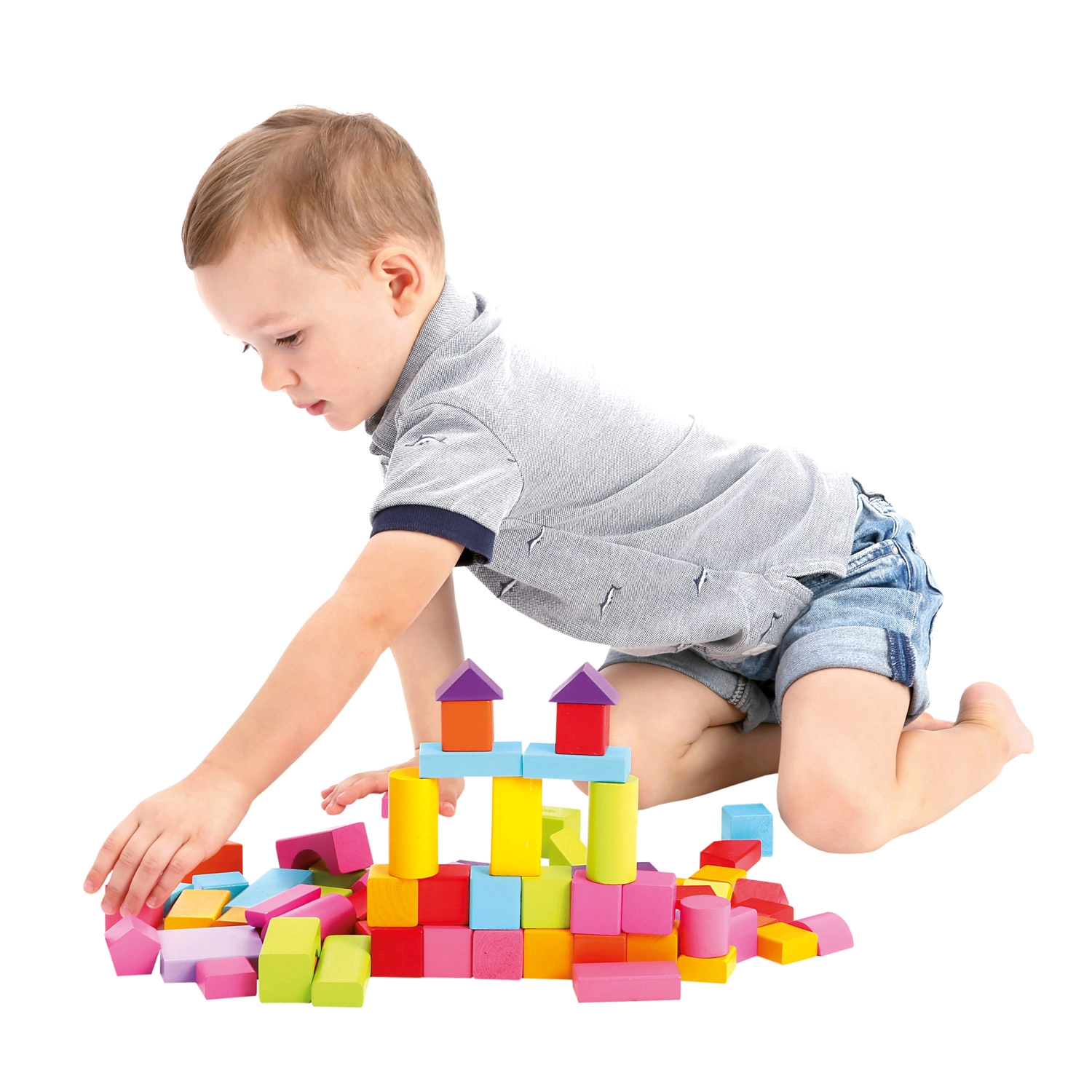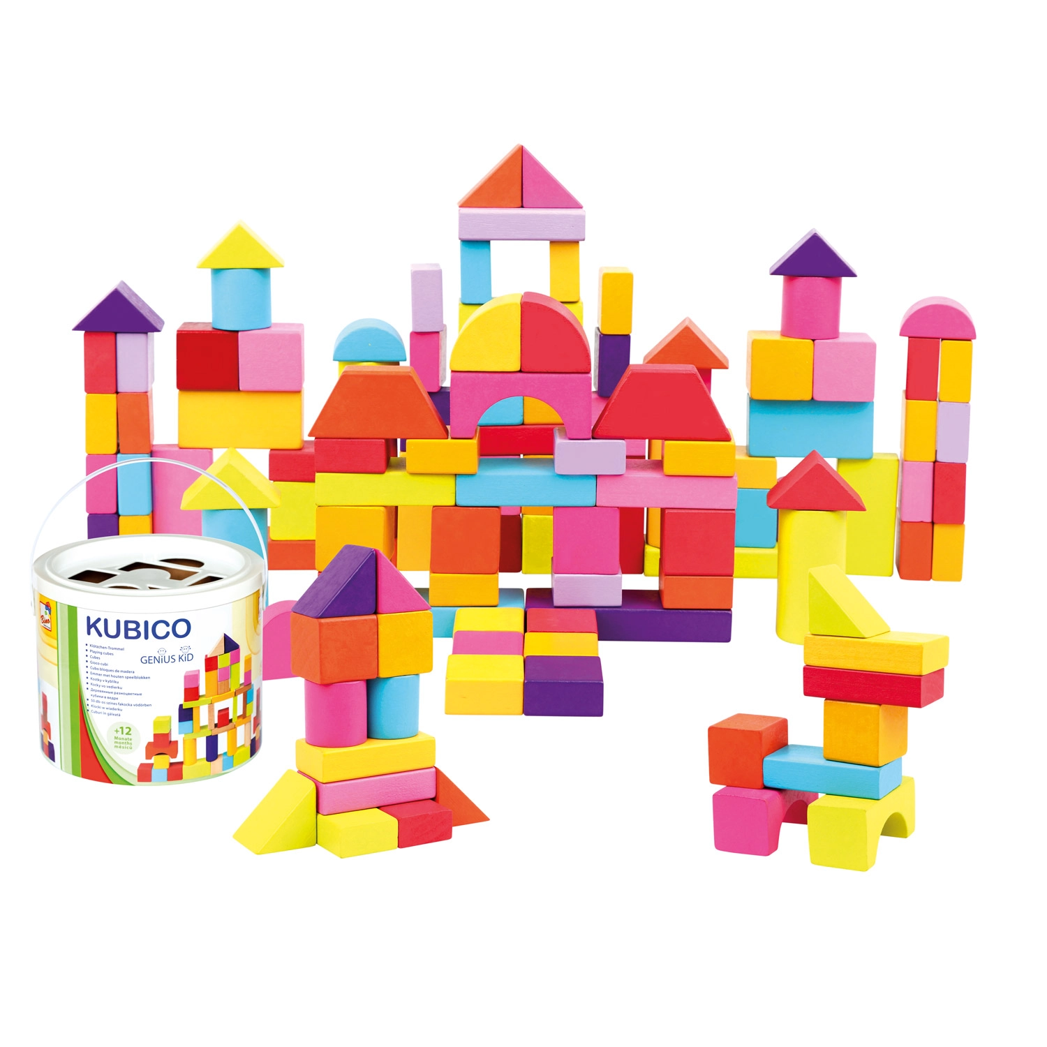 Ideāli piemērots bērniem no 1 gada: klucīšiem ir patīkami gluda virsma, košas, drošas krāsas un daudzveidīgas formas – no kubiem un ķieģelīšiem līdz cilindriem, lokiem un trīsstūriem. Spēle ar klucīšiem veicina telpiskās uztveres, radošuma un roku–acu koordinācijas attīstību.