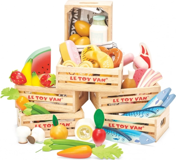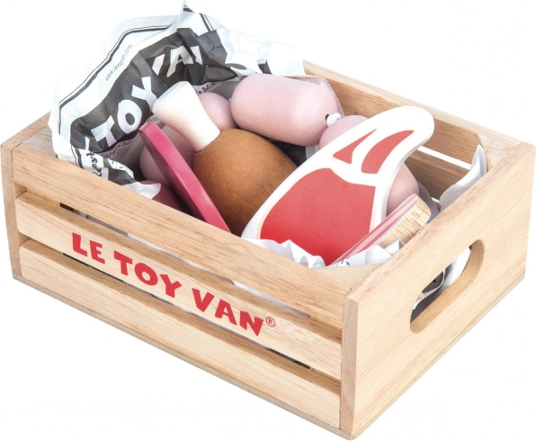 Le Toy Van koka kastīte ar gaļas izstrādājumiem piedāvā lielisku veidu, kā bērniem mācīt par dažādiem pārtikas produktiem un sabalansēta uztura nozīmi. Komplektā ietilpst: