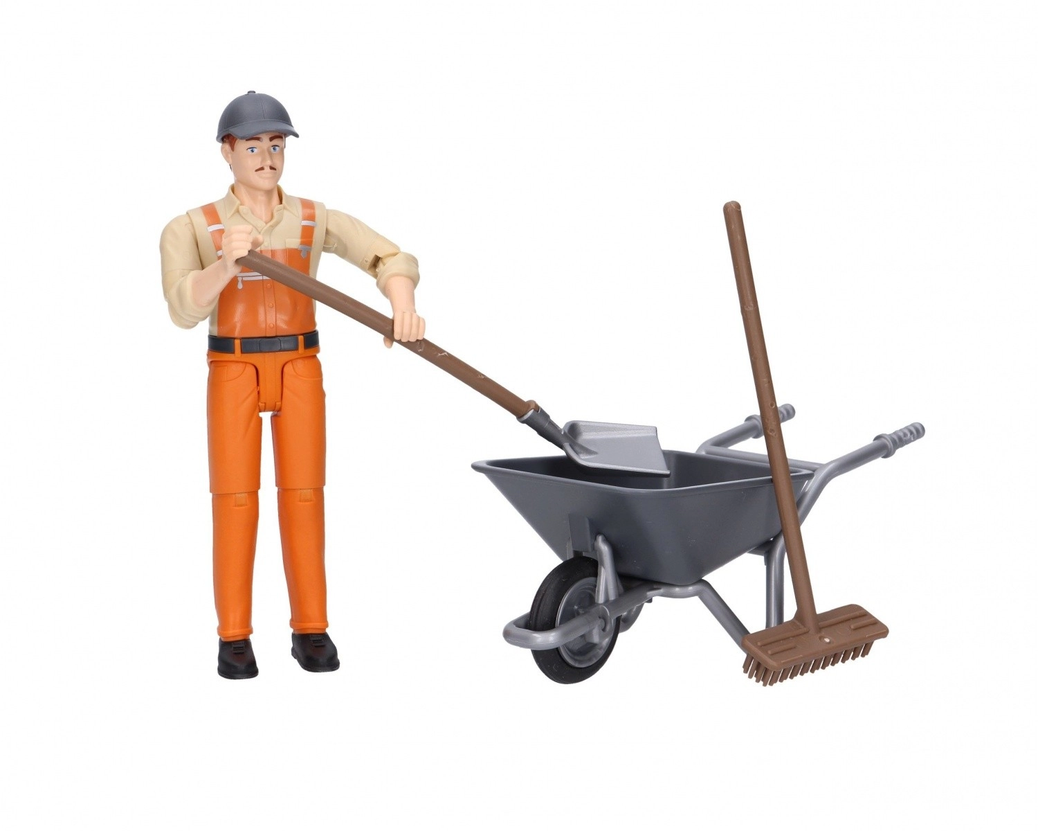 Izbaudiet stundām ilgu jautru spēli ar Bruder Bworld komunālo komplektu ar figūriņu. Figūriņai ir kustīgas ekstremitātes, kas ļauj viegli satvert dažādus rīkus, piemēram, ķerru, slotas birsti un lāpstu. Šis komplekts ir izgatavots no kvalitatīvas ABS plastmasas Vācijā, kas nodrošina izturību un drošību spēles laikā.
