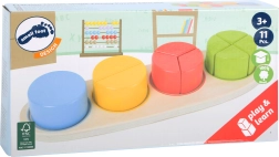 Šī pievilcīgā, krāsainā mācību spēle no 100% FSC sertificētas koksnes ir ideāls rīks bērnu sīkās motorikas un koncentrēšanās spēju attīstīšanai. Lielais cilindrs ir sadalīts mazākos segmentos, kurus bērni šķiro pēc formas un krāsas.