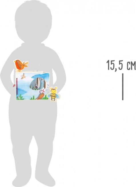 Atklājiet dabas pasauli ar šo koka bilžu grāmatiņu pašiem mazākajiem. Jautrā bitīte un putniņš pavada bērnus katrā lapā, attīstot iztēli, sīko motoriku un pirmo iepazīšanos ar floru un faunu. Figūriņas drošai uzglabāšanai var piestiprināt grāmatas aizmugurē ar lipekļu palīdzību. Izgatavota no 100% FSC sertificēta koka.