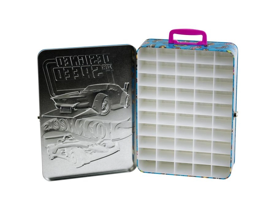 - Pārskatāmi nodalījumi pielāgoti HOT WHEELS modeļu izmēram.