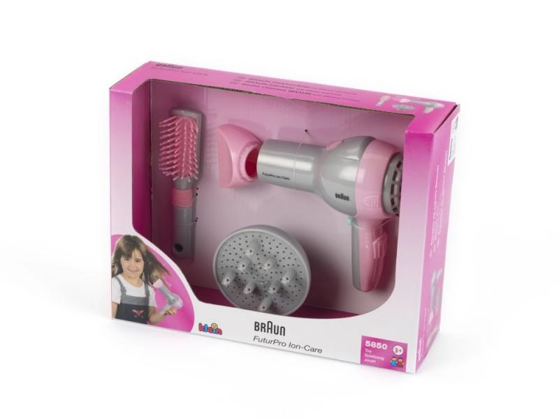 Piedāvājam bērnu fēnu Braun ar difuzoru un birsti, ideāli piemērotu mazajām frizierēm. Produkts izgatavots ar Braun licenci, kas tam piešķir reālistisku izskatu, līdzīgu īstai ierīcei. Izstrādājums ir pilnīgi drošs, fēns tikai pūš gaisu, neuzkarstot, kas nodrošina drošību bērnu rokām.