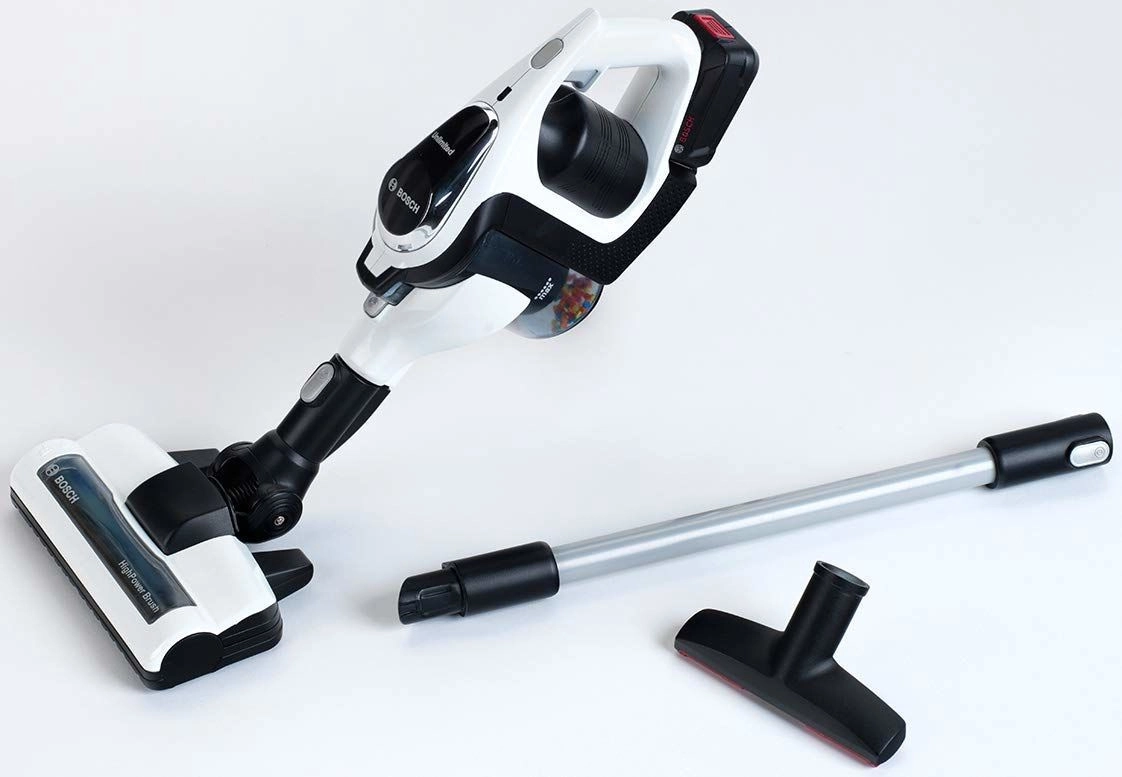 Bērnu stieņa putekļsūcējs BOSCH Unlimited no Klein zīmola ir reālistiska rotaļlieta mazajiem palīgiem mājās. Tas piedāvā LED gaismu, virpuļojošas lodītes tvertnē, divas maināmas uzgaļu sprauslas un iespēju viegli pārvērst par rokas putekļsūcēju. Vieglā un drošā konstrukcija ir ideāli piemērota bērniem no 3 gadu vecuma un veicina pieaugušo atdarināšanu un motorikas attīstību.