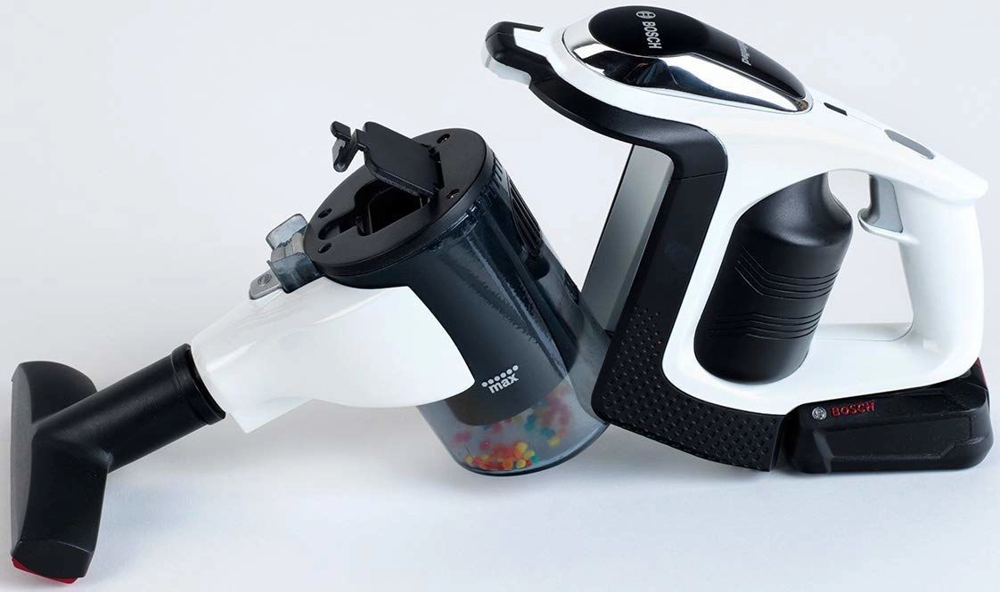 Autentisks bērnu putekļsūcējs BOSCH Unlimited baltmelnbaltā krāsojumā ar sudraba cauruli uzticīgi atdarina īstu ierīci. Pateicoties LED apgaismojumam un rotējošām lodītēm caurspīdīgajā tvertnē, “sūcot” tas izskatās ļoti reālistiski, vienlaikus paliekot pilnīgi drošs rotaļām.