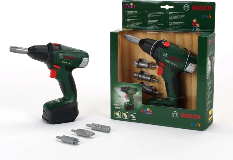Sagādājiet mazajiem meistariem autentisku pieredzi ar bērnu akumulatora urbjmašīnu BOSCH II. Izturīgs izpildījums, patiesa līdzība un tādas funkcijas kā LED apgaismojums, divi ātrumi un rotācijas virziens pa labi/pa kreisi veicina motorikas, iztēles un lomu spēļu attīstību.
