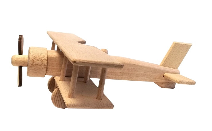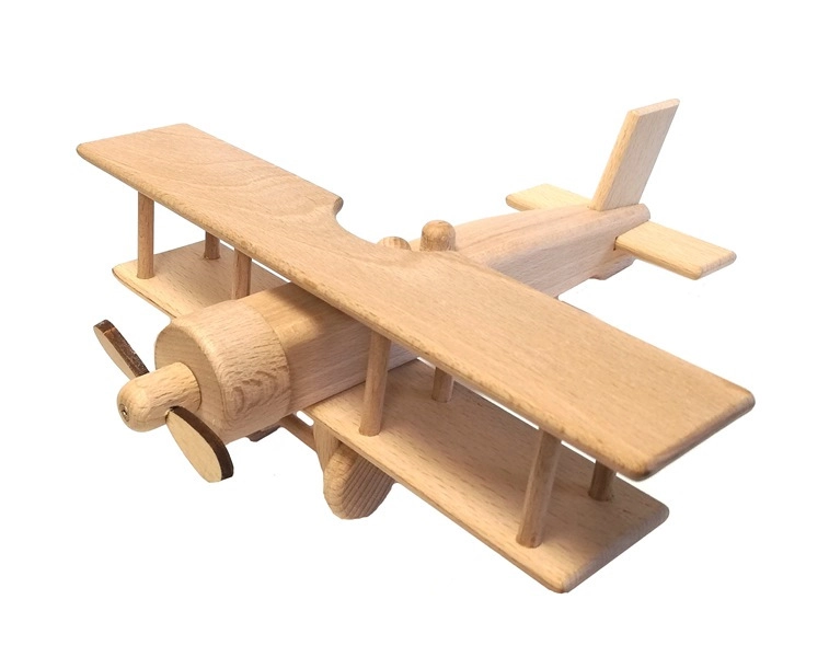 Atklājiet klasiskās spēles burvību ar kvalitatīvi izgatavotu koka divplāksni no dižskābarža koka. Tai ir dabiska vaskota virsma, kustīgs propellers un riteņi un drošas apaļotas malas bezrūpīgai bērnu izklaidei mājās un smilšu kastē.