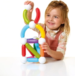 Magnētiskais konstruktors SmartMax Start Plus ir ideāla izvēle mazajiem atklājējiem. Komplektā ir 30 detaļas, tostarp garās un vidējās stieņveida detaļas, līkumi un savienojošas bumbiņas, kas ļauj veidot gan vienkāršas, gan sarežģītas konstrukcijas. Bērni var izmēģināt dažādas 2D un 3D formas un būves, piemēram, torņus vai tiltus.