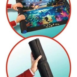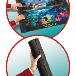 Taupiet vietu un aizsargājiet gan iesāktās, gan pabeigtās puzles ar RAVENSBURGER rullējamo paklāju. “Neslīd”, tam ir kvalitatīvs plastmasas veltnis ar patentētu sistēmu un tas ir ideāli piemērots puzlēm līdz 1500 gabaliņiem (aptuveni 100 × 60 cm). Vienkārši salieciet, satiniet rullī, nostipriniet ar gumijas siksnām un varat droši uzglabāt vai pārvadāt.