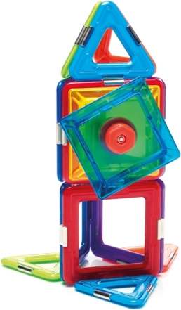 Komplektā ir kopā 6 magnētiski kvadrāti, 8 trijstūri un 1 spineris, kas nodrošina plašas iespējas eksperimentēšanai. Šis komplekts ir ne tikai izklaidējošs, bet arī izglītojošs, un attīsta bērnu prasmes, piemēram, telpisko iztēli, koordināciju, koncentrēšanos un radošumu.