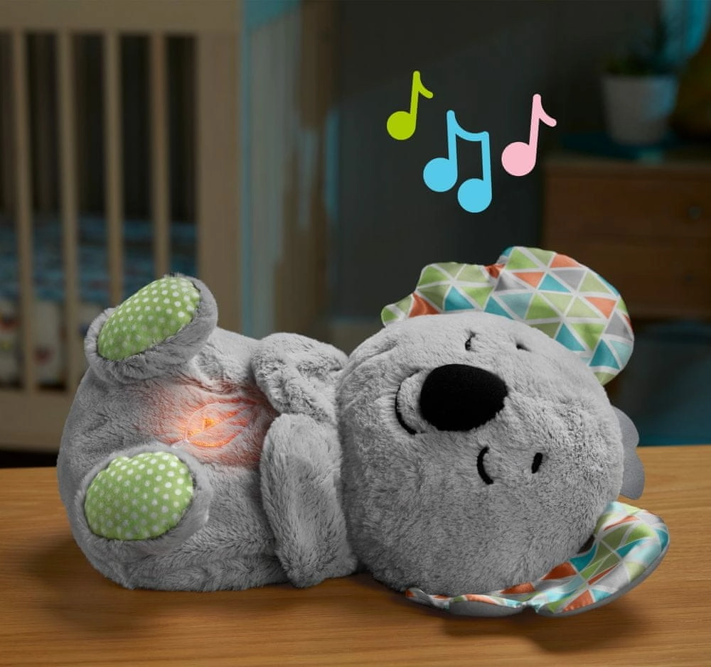 Mīlīgā mīkstā koala no Fisher-Price palīdz mazulim aizmigt, pateicoties reālistiskam elpošanas ritmam, nomierinošai mūzikai un dabas skaņām un maigai daudzkrāsu gaismai vēderiņā. Mīksto rotaļlietu ir viegli kopt – pēc elektronikas izņemšanas tā ir mazgājama veļas mašīnā, un tās daudzveidīgās tekstūras maņu attīstībai aizraus mazas rociņas.