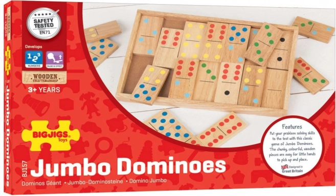 Jumbo koka domino ir perfekti pielāgoti mazajiem bērniem, kuri viegli tiek galā ar kauliņu pacelšanu un novietošanu. Galvenās šīs spēles priekšrocības ietver: