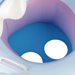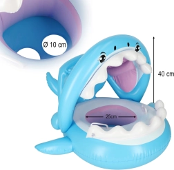 Piepūšamais bērnu ūdens krēsliņš jautrā haizivs dizainā ir lieliski piemērots pirmajai iepazīšanai ar ūdeni baseinā, upē vai ezerā. Noņemamā nojume pasargā no saules, savukārt sēdeklis ar kāju caurumiem notur bērnu stabili un ērti.