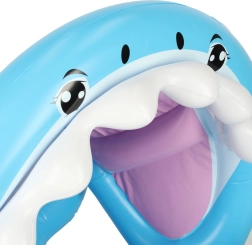 Mīlīgs piepūšamais pontons haizivs formā pārvērtīs katru peldēšanos par piedzīvojumu. Pateicoties ēnojošai nojumei, ērtam sēdeklim ar atverēm kājām un praktiskām rokturiem jūsu mazais jūrnieks izbaudīs ūdenspriekus droši un ērti. Izturīgs PVC izturēs pat sezonu, kas pilna ar jautrību. Maksimālā slodze 23 kg.