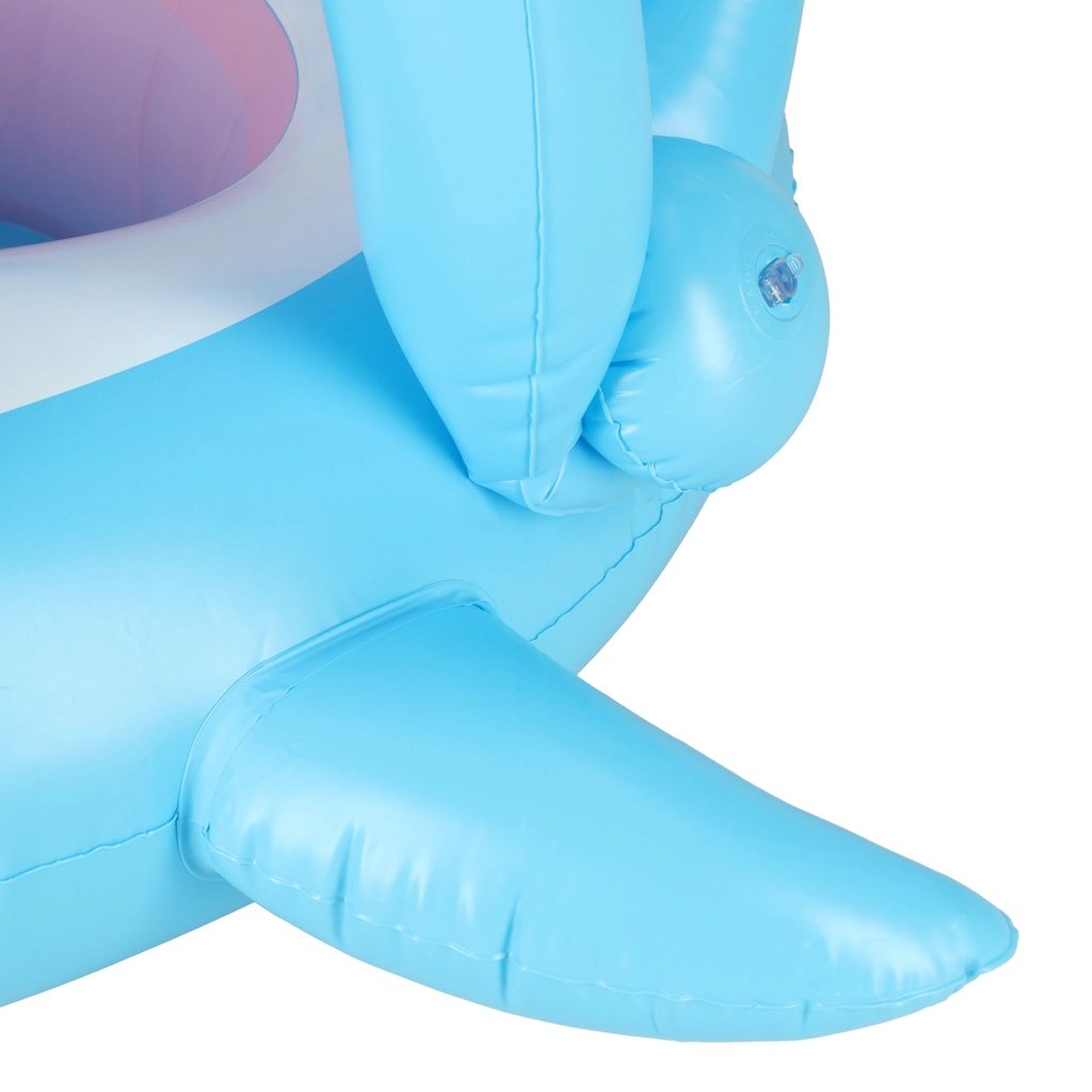 Iebūvētā jumtiņa tipa nojume samazina saules iedarbību un palielina bērna komfortu arī ilgākas uzturēšanās laikā ūdenī.