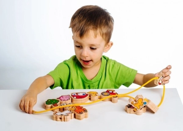 Dažādu formu vēršana uz diega palīdz bērniem uzlabot roku un acu koordināciju.