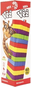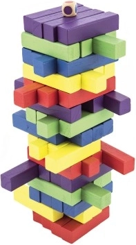 Klasiskais koka tornis ir ideāli piemērots visām vecuma grupām. Ar 60 krāsainiem klucīšiem varat pavadīt stundām ilgu izklaidi mājās vai ārā.