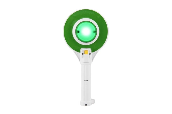 Šī plastmasas policijas plāksnīte ir aprīkota ar iebūvētu gaismu, kas no vienas puses spīd sarkanā, bet no otras – zaļā krāsā, palīdzot bērniem apgūt satiksmes pamatprincipus.