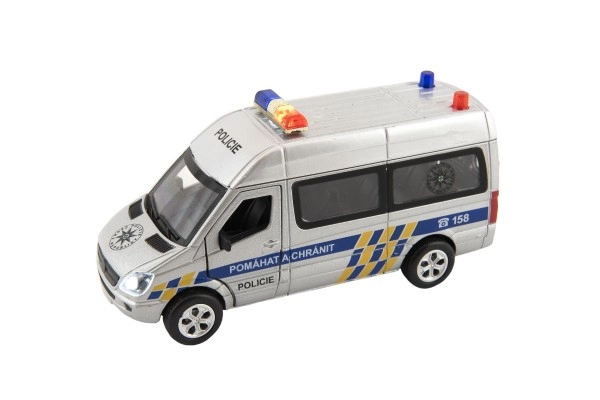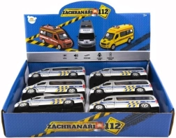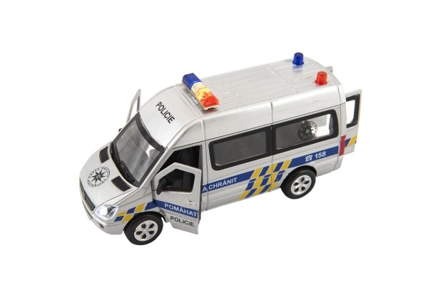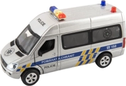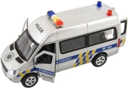 Izturīgs metāla policijas auto ar plastmasas detaļām iepriecinās visus mazos kārtības sargus. Tas piedāvā gaismas un skaņas efektus, atvilkšanas mehānismu ātram startam, atveramas durvis un tiek piegādāts ar baterijām komplektā.