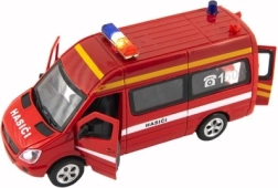 Reālistiska metāla ugunsdzēsēju mašīna ar plastmasas detaļām mazajiem glābējiem. Piedāvā gaismas un skaņas efektus, atvilkšanas mehānismu ātrai braukšanai, atveramas priekšējās un aizmugurējās durvis un kompaktu 15 cm izmēru. Baterijas iekļautas komplektā, tāpēc jautrība var sākties uzreiz.